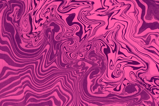 Suminagashi marble texture hand painted with pink ink. Digital paper 1593 performed in traditional japanese suminagashi floating ink technique. Posh liquid abstract background.
