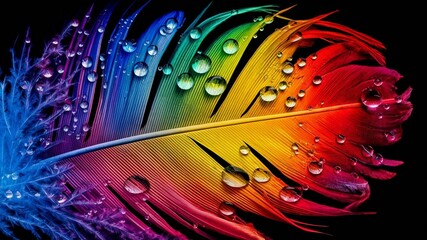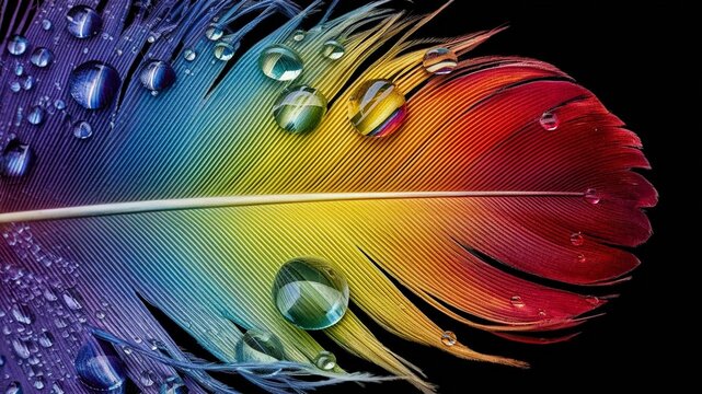 Colorful Feather with Water Dew Drops, Abstract Image, Texture, Pattern Background, Wallpaper, Background, Cover and Screen of Cell Phone, Smartphone, Computer, Laptop, Format 9:16 and 16:9 - PNG