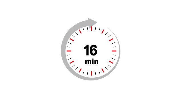 Animation video timer icon with 16 min. The 16 minutes, stopwatch icon. Stopwatch icon in flat style. 16 minute timer symbol,