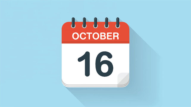 A flat design digital calendar 16 october icon on a light blue background.