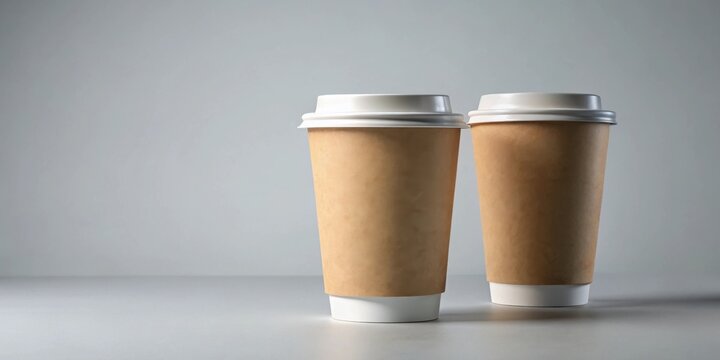 16 oz single wall paper large coffee cup mockup with two floating cups in a
