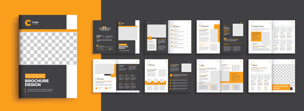 Business brochure template with yellow, red modern shape. Company profile 16 pages a4 brochure template layout design