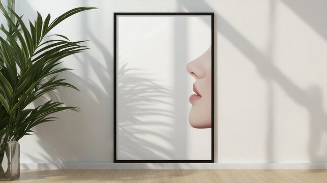 White blank frame on white wall mockup, 4:5 ratio - 40x50 cm, 16 x 20 inches, poster frame mockup, 3d rendering