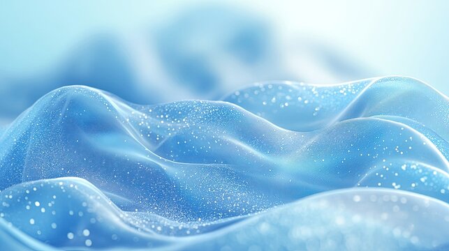 Blue particles flowing in a wave pattern, enhanced with depth of field and bokeh effects. --ar 16:9 --style x