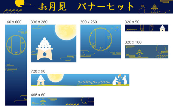 Halloween trick or treat web banners with moon and clouds vector illustrations. Collection of four different sizes banners: 970x250, 720x300, 300x250, 160x600