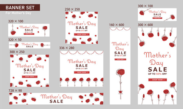 母の日  セール バナーセット 文字無し/ Mother's Day Banner Set (No Text) - Vector Image