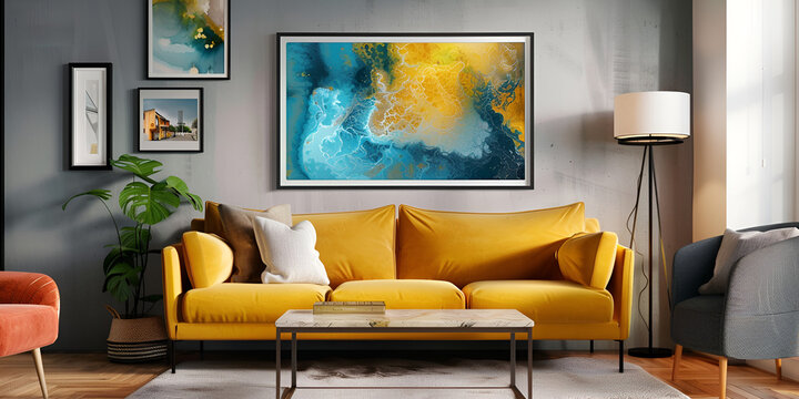 Mockup of an empty and blank frame frame horizontal oriented frame ratio 169 as a TV The lighting with white background