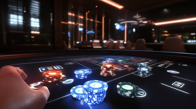 Immersive VR casino with realistic virtual chip manipulation in 169 ratio