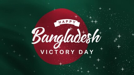 Happy Bangladesh Victory Day Lettering Text Animation with waving flag background. Celebrate Bangladesh National Day on 16th of December. Great for celebrating Bangladesh Victory Day.
