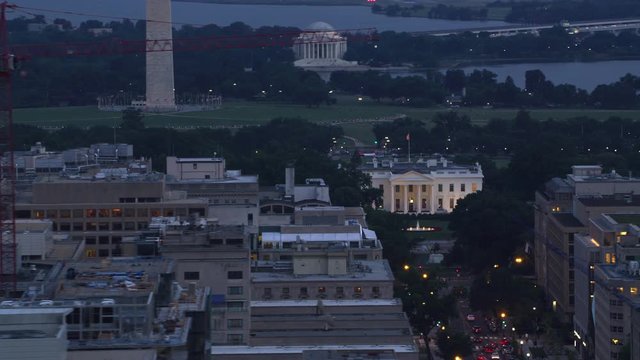 Washington, D.C. circa-2017, Aerial reveal of White House from 16th Street.  Shot with Cineflex and RED Epic-W Helium.