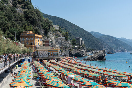 Cox's Bazar, Bangladesh - 17 August 2023: Aerial view of rows of drying fish shimmer under the sun, as workers in vibrant clothes tend to their harvest.