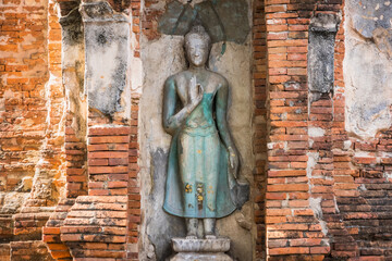 Ayutthaya,Thailand - September,17, 2023:  Broken Buddha statues in Wat Mahathat, Ayutthaya, Thailand