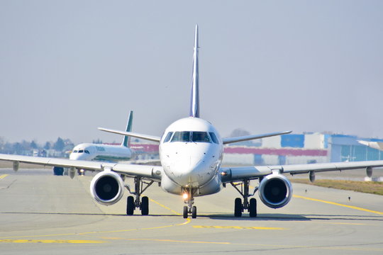This is a view of LOT-Polish Airlines plane Embraer ERJ 170 registered as SP-LIA on the Warsaw Chopin Airport. April 1, 2017. Warsaw, Poland.