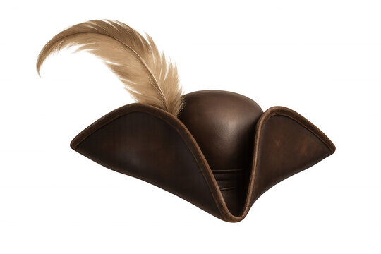 Tricorn hat with feather isolated on transparent background, evoking historical fashion and adventure