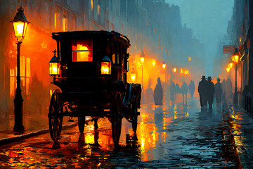 Romantic Foggy Parisian Street  with Carriage – 1700s Atmosphere