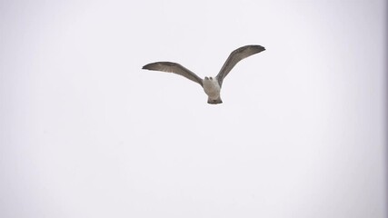 Juvenile Seagull Flying Toward Camera in Slow Motion Against Cloudy Sky - 1705
