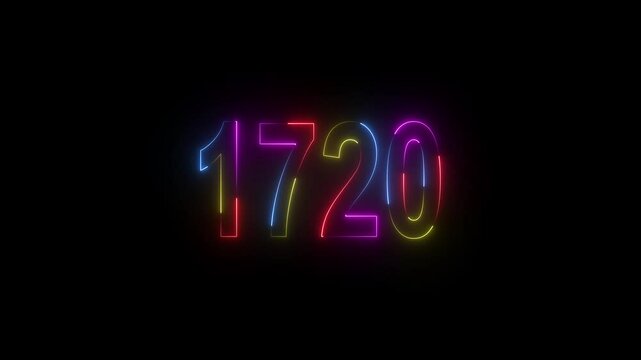 1720 Glowing Neon Line Text Animation, Powerful Abstract Neon Number Design in Stunning 4K Highlighting the Iconic and Important Year important date 1720.
