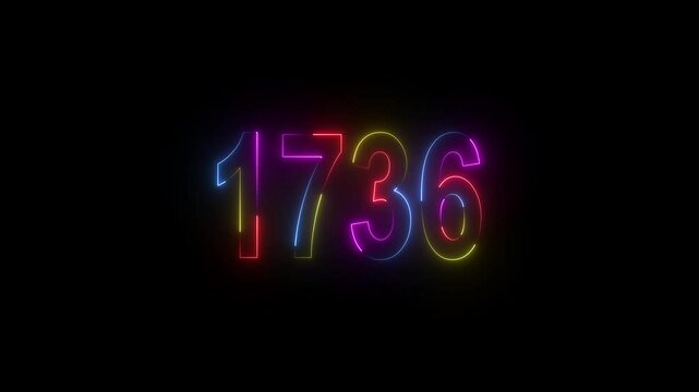 neon sign 1736 ,Four neon color Glowing neon number text background 4k video animation . 1736 title metal text on black alpha channel background