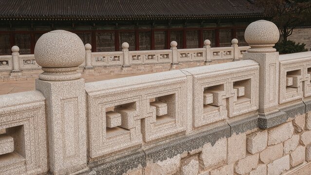 Ornate stone barrier surrounding a traditional regal chamber