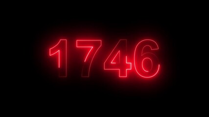 1746 Glowing Neon Line Text Animation, Powerful Abstract Neon Number Design in Stunning 4K Highlighting the Iconic and Important Year important date 1746.