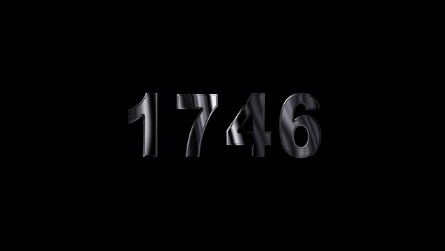 1746 text with screen effects of technological failures. Concept of counting years. Past year technology concept ,metal animation text on transparent black.