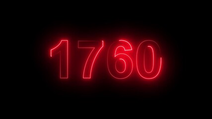 1760 Glowing Neon Line Text Animation, Powerful Abstract Neon Number Design in Stunning 4K Highlighting the Iconic and Important Year important date 1760.