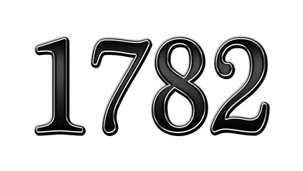 black metal 3d design of number 1782 on white background.