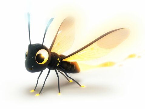 A 4D cartoon firefly with a glowing tail flying on 128 1786 insect, cartoon, dragonfly, animal, fly, vector, illustration, nature, flying, mosquito, bee, bug, isolated, flower, wing, butterfly, wings,