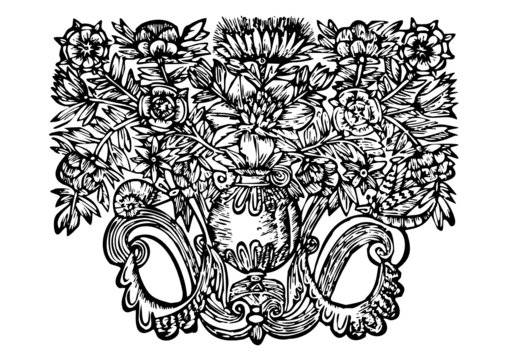 Painterly image of colorful peonies. Rococo style and chiaroscuro lighting. Vibrant resource background and wallpaper.