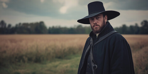 Man dressed as a courtier of 17-18 century greets someone on gra