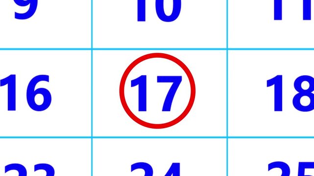 The calendar of august month 17th day is red circled,looped animation.A very important date in the calendar.Signing a day on a calendar.