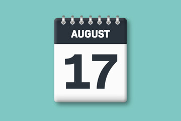 august 17. 17th day of the month, calendar date. Summer month, day of the year concept.