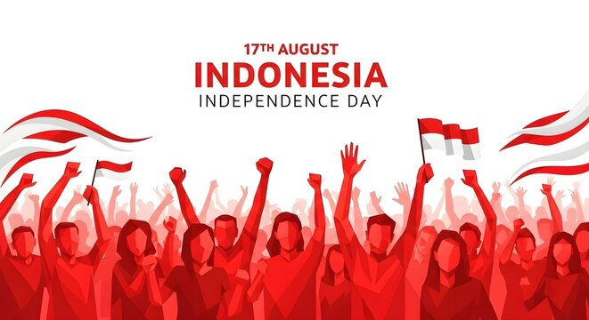 Celebrate Indonesian Independence Day! This illustration showcases the spirit of the 17th of August with crowds and national pride. Great for patriotic themes and designs.