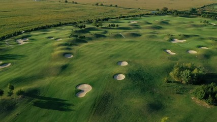Aerial panning up shot of tree lined Golf Course - stock video
