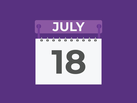 July 18 calendar reminder. 18 July daily calendar icon template. Calendar 18 July icon Design template. Vector illustration