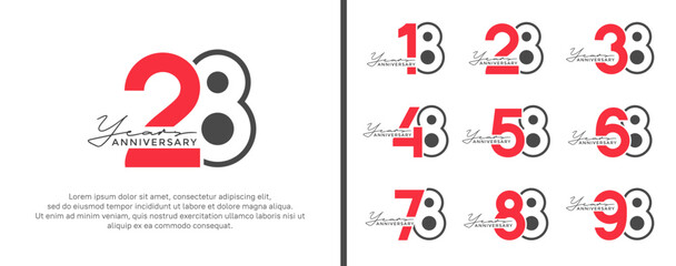 set of anniversary logo style flat red and black color for celebration