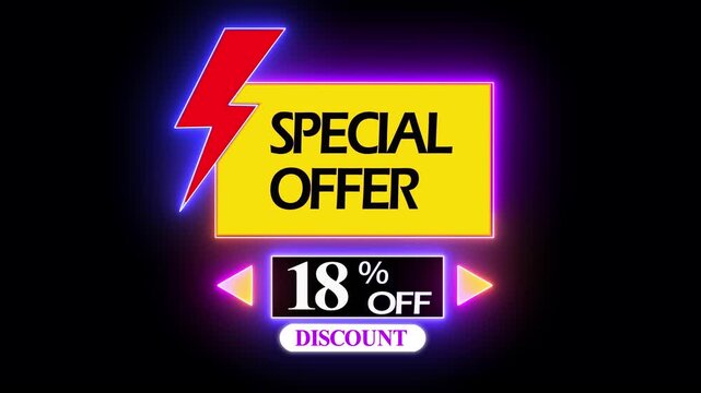 Big Sale Special Offer 18 Percent Off Banner discount 4k animation video on black background