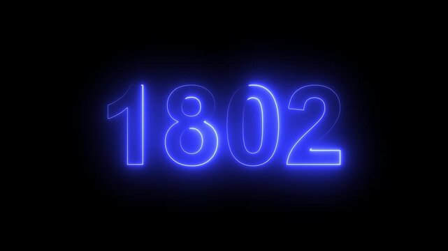 1802 Glowing Neon Line Text Animation, Powerful Abstract Neon Number Design in Stunning 4K Highlighting the Iconic and Important Year important date 1802.