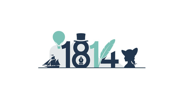 Creative illustration of the year 1814 with various symbolic elements and objects.