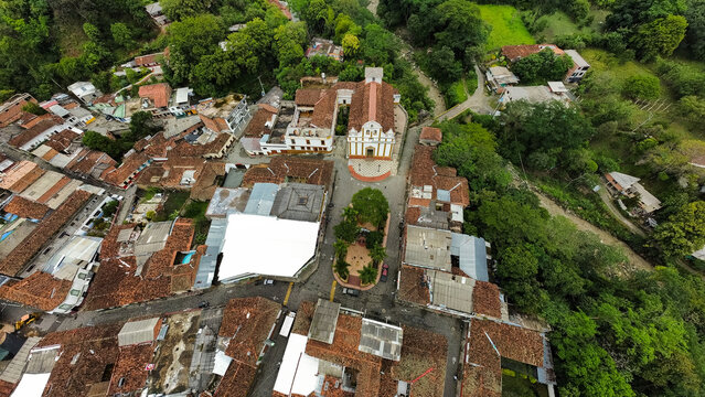 Liborina, Antioquia - Colombia. November 15, 2023. Aerial panoramic with drone of the municipality, Founded on March 7, 1832