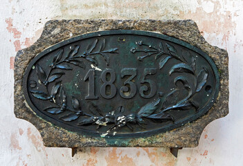 Old plate dating from 1835, Rio de Janeiro, Brazil