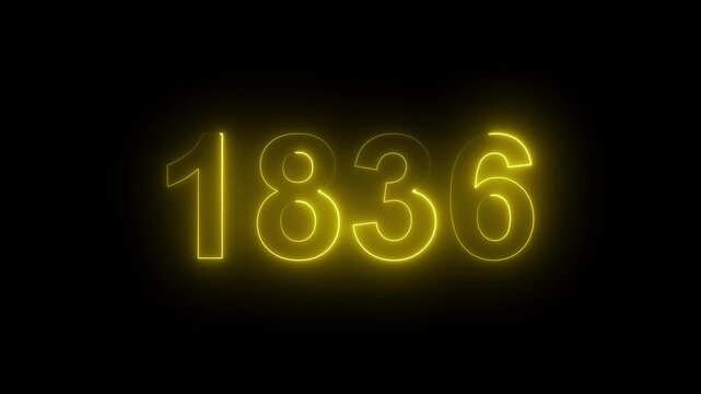 1836 Glowing Neon Line Text Animation, Powerful Abstract Neon Number Design in Stunning 4K Highlighting the Iconic and Important Year important date 1836.