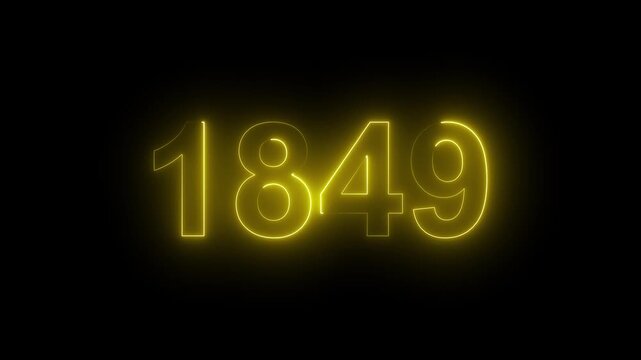 1849 Glowing Neon Line Text Animation, Powerful Abstract Neon Number Design in Stunning 4K Highlighting the Iconic and Important Year important date 1849.
