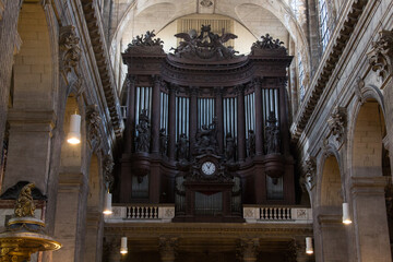 THE CHURCH OF SAINT-SULPICE, PARIS, FRANCE - SEPTEMBER 09, 2018: The Great Organ reconstructed by Aristide Cavaillé-Coll in 1862.
