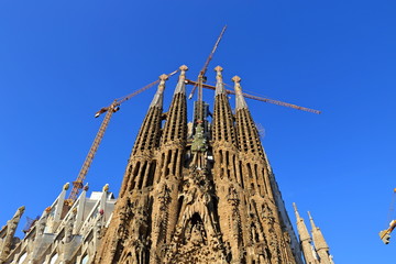 Barcelona, Spain - June 15, 2019: Cathedral of La Sagrada Familia. Designed by architect Antonio Gaudi and has been under construction since 1882.