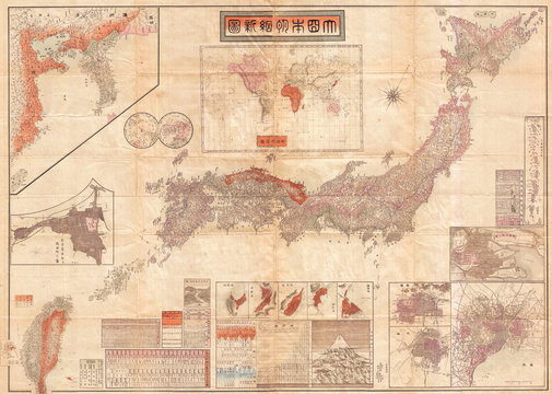 1895, Meiji 28 Japanese Map of Imperial Japan with Taiwan