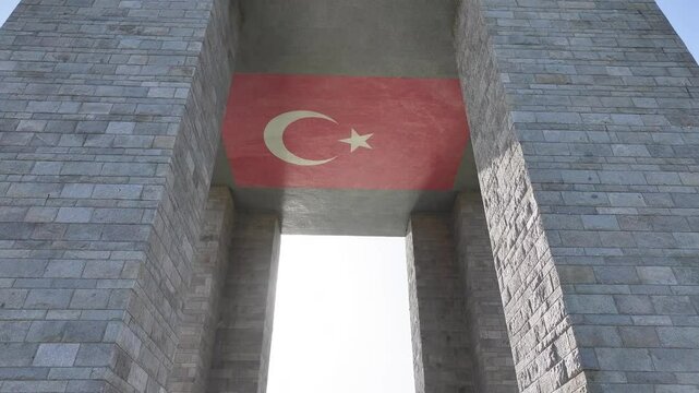 Turkish Flag (Turk Bayragi) and Canakkale Martyrs' Memorial Drone Video, Canakkale Martyrs' Cemetery Canakkal,e Türkiye (Turkey)