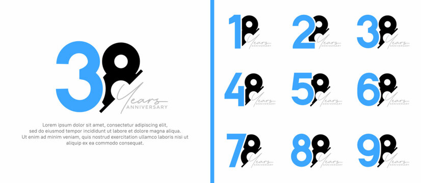 set of anniversary logo style blue and black color on white background for special moment