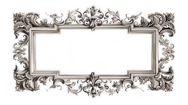 An exquisite grayscale ornamental frame displaying baroque styles, characterized by detailed scrolling and symmetrical forms, ideal for adding a classic touch to any artistic piece.