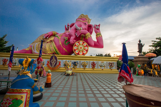 Wat Samanratanaram (Temple of the Ganesh): 18th June 2018. People have to worship throughout the day. Located in downtown Chachoengsao, Thailand.